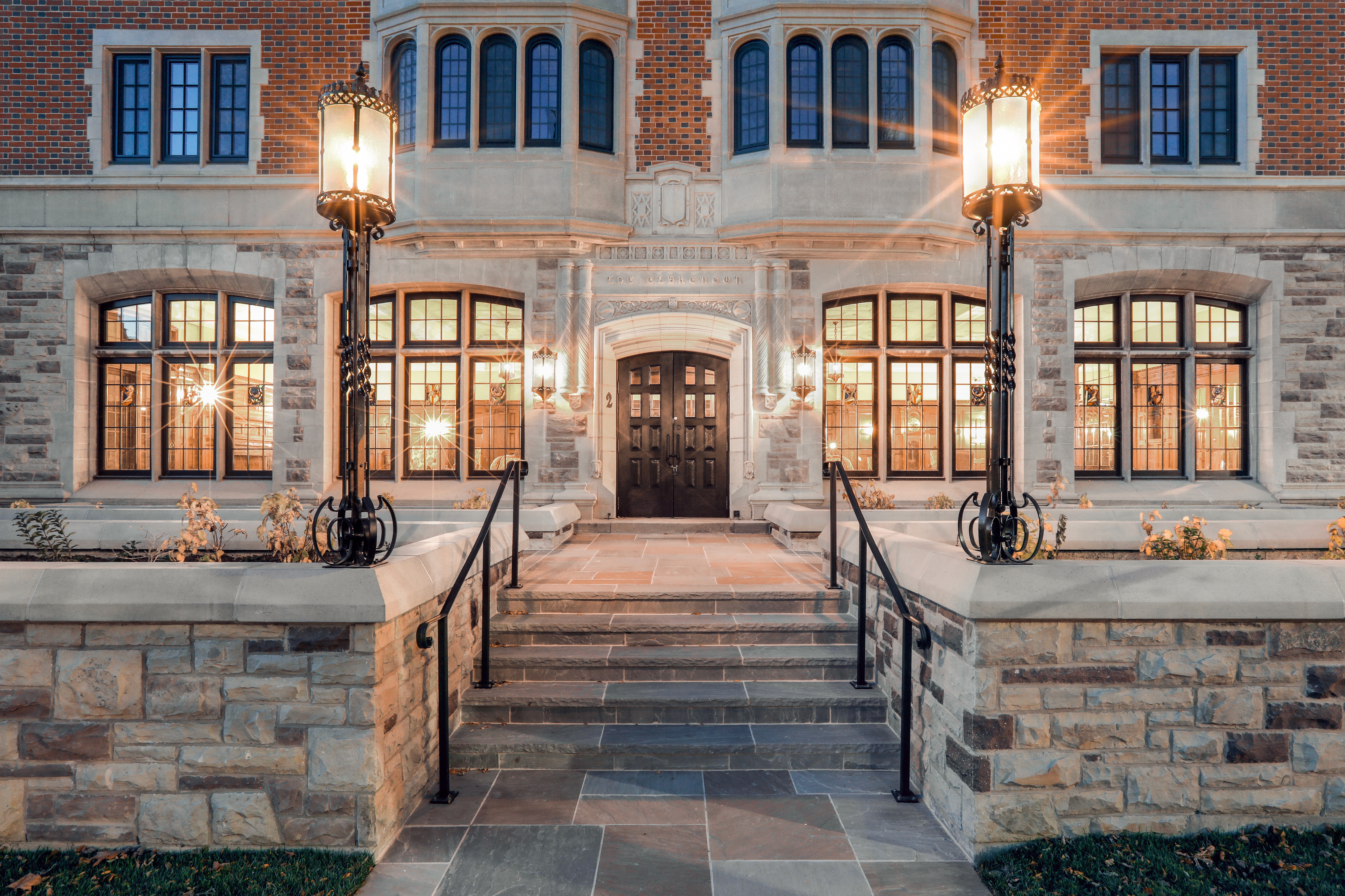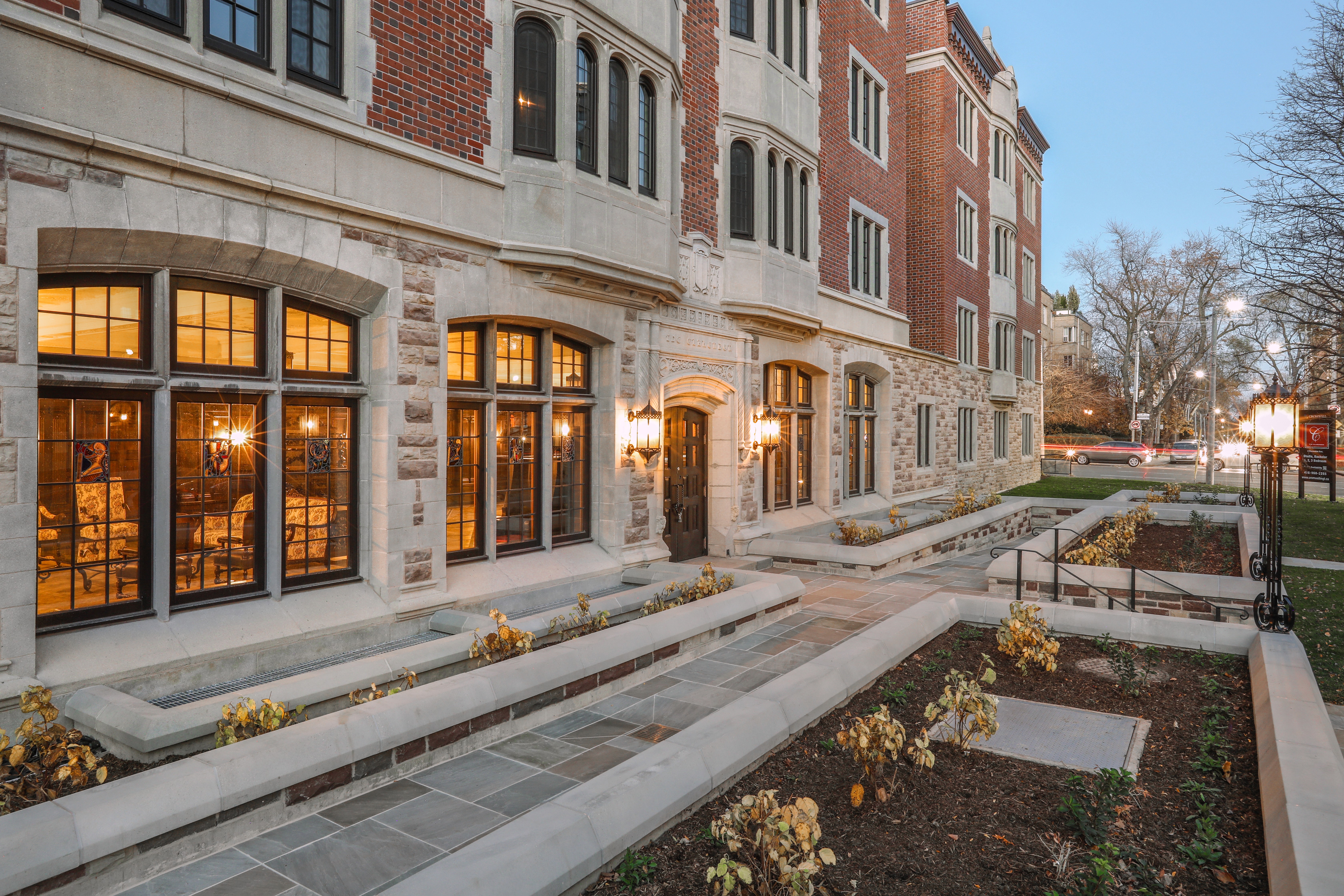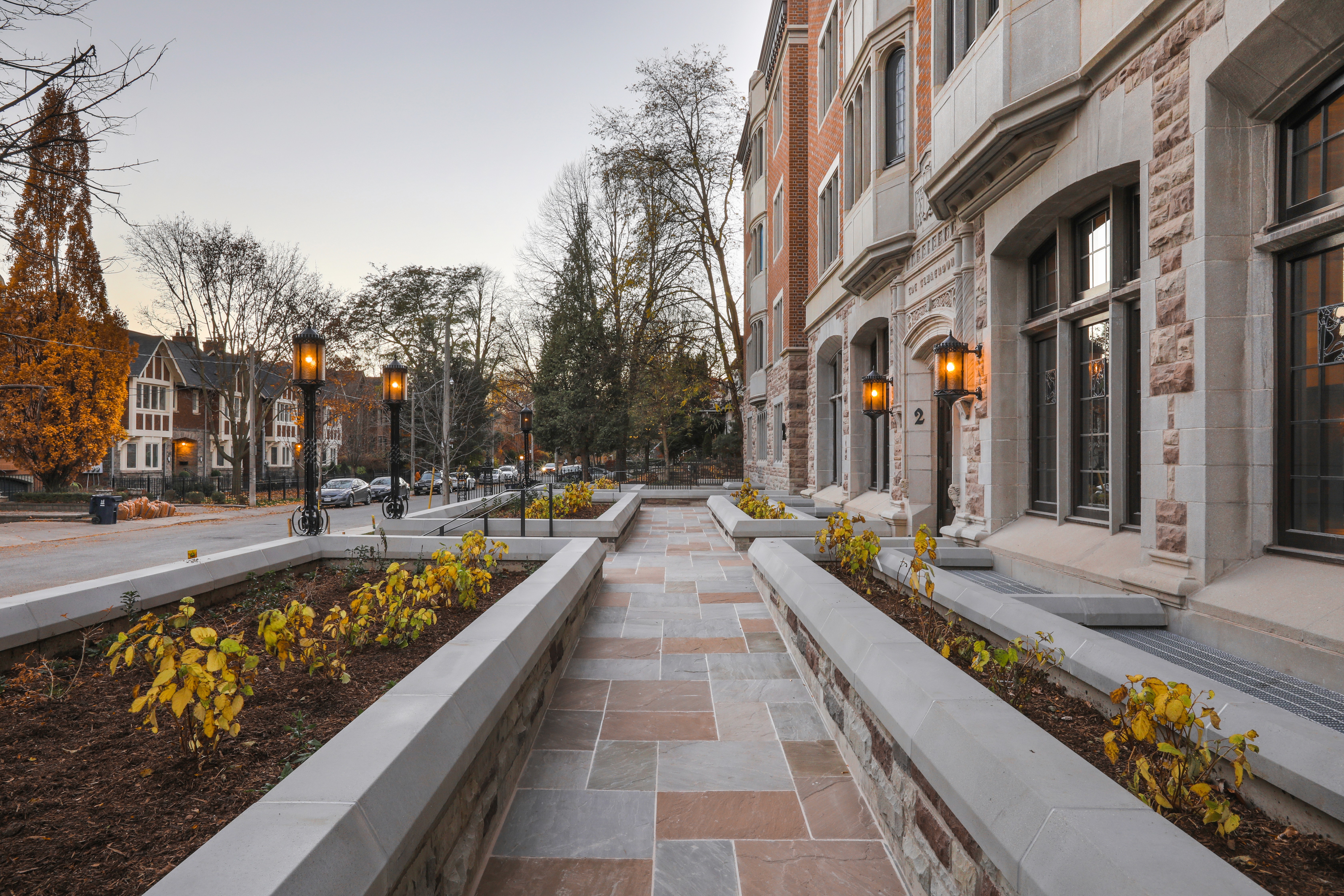 The condition of the mortar, stones and windows on the facades required complete restoration. Eight hundred new masonry elements surrounding the six lead glass bay windows were installed with precision after the original elements had been dismantled and cataloged to ensure the new elements matched the original work.